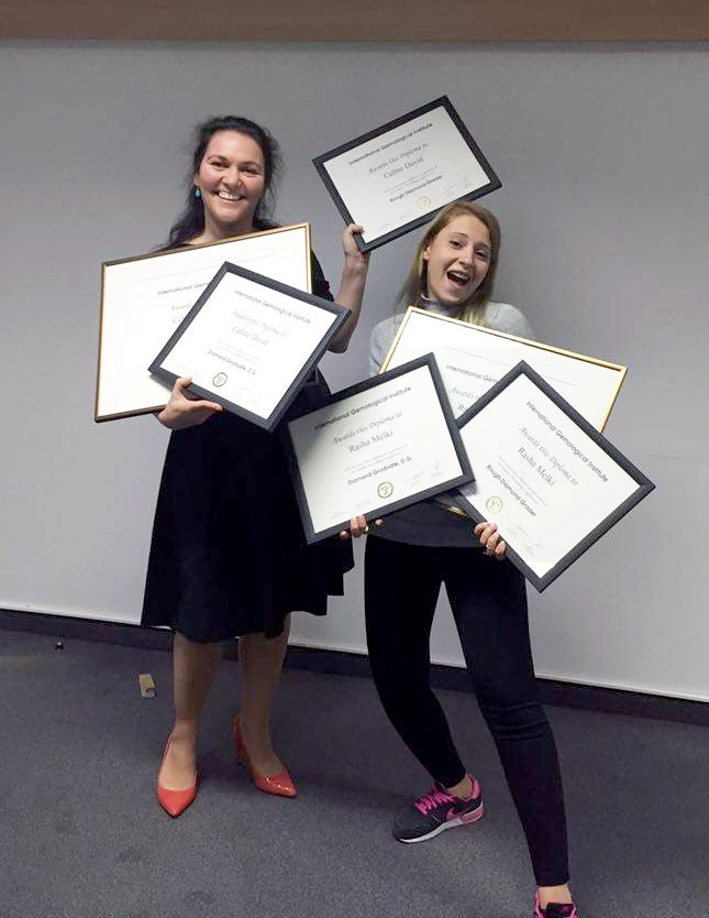 CÉLINE ENTOURÉE DE SES ÉLÈVES EXPERTS DE L’ECOLE DE GEMMOLOGIE DE MONTRÉAL AU CANADA